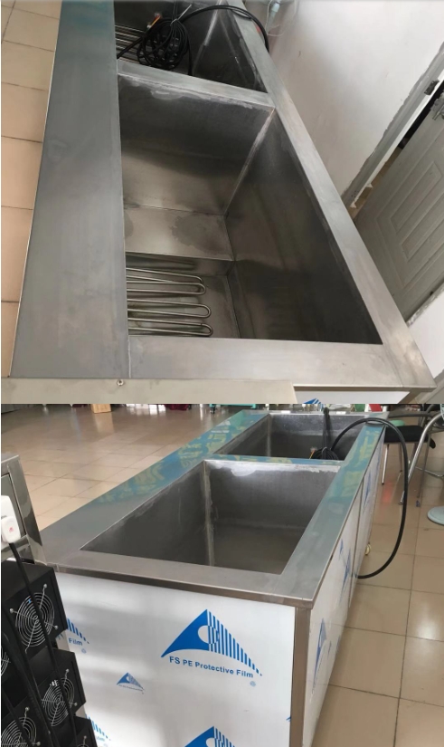 1.清洗机设备采用全不锈钢工艺制造,超声波振动部分采用304L 3.0mm不锈钢板才制作。