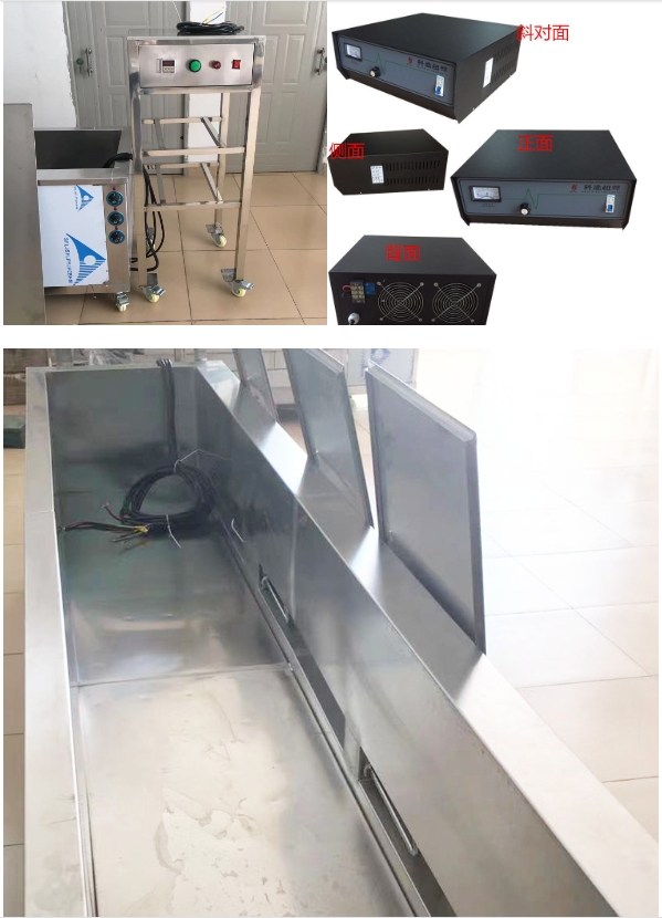 7、 发生器采用大功率IGBT集成IC线路推动;耐压耐流高,故障率低,输出功率稳定,强劲,持久耐用,超声波输出功率可以调节。超声波发生器独立安装,防置于独立架子上,以防潮湿,易于保养。