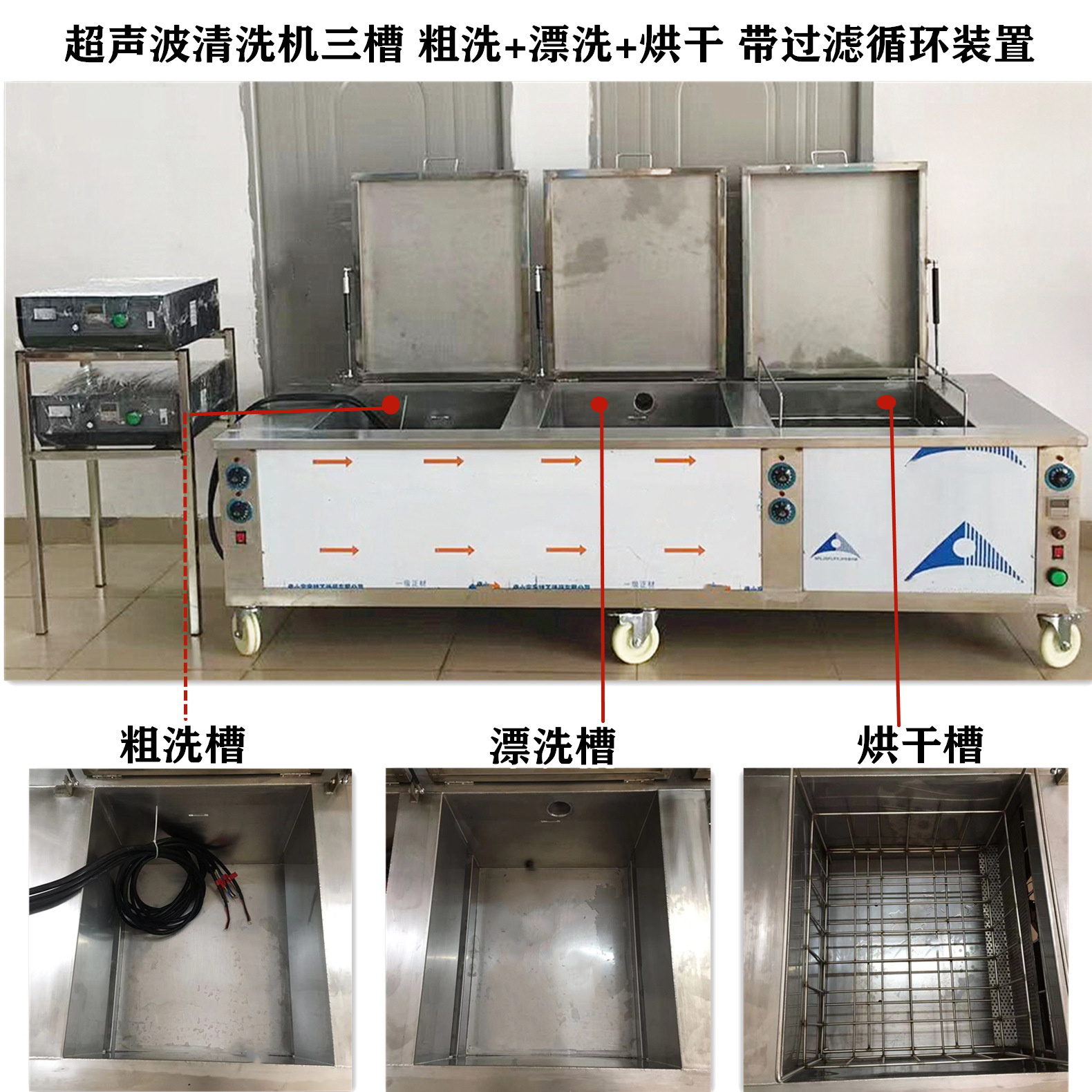 | 三槽功能 | 超声波粗洗+漂洗+烘干槽适用各行各业 |
